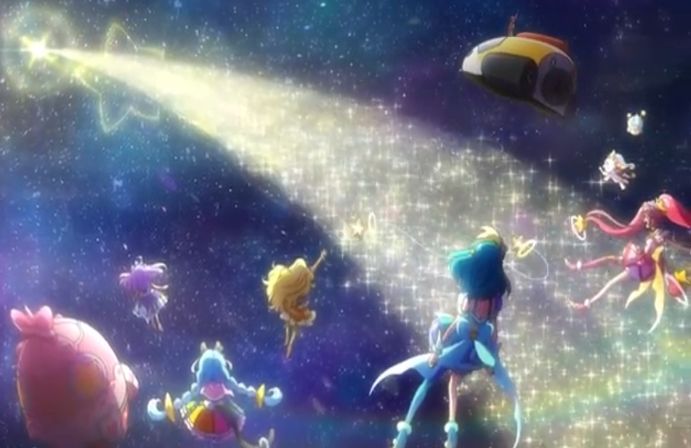 Have you ever wondered how your song literally creates a new planet with an alien creature you just met? Well this scene from the Star Twinkle movie shows how experiences and memories create a whole new world as well as saving your friend from their darkness. After regretting for showing her anger towards UMA, as well as her fear of saying goodbye, Lala along with her friends try to save their new friend from going out of control. Lala and Hikaru started singing the song that Hikaru sang earlier on in the film Twinkle Stars, with a gorgeous duo transformation in real time. Then they are soon joined by Elena, Madoka and Yuni. All the memories they shared with UMA from seeing interesting landmarks to seeing the ocean as well as the animals helps calm UMA down but also help it create its new planet. This whole sequence was absolutely gorgeous from beginning to end with both 2D and 3D animation, the harmonies between the Cures and of course the music and dance choreography. This has created quite a masterpiece for a movie musical number. With how this movie ended, I’m sure the girls will see UMA and its planet again someday. Maybe for its own sequel season I wonder.